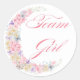 Adesivo Redondo chá de fraldas de moça de lua floral pastel rosa