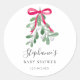 Este adesivo de Chá de fraldas de Natal é decorado com uma concha verde-aquarela, uma fita vermelha e uma tipografia na moda. Facilmente personalizável. Original Watercolor © Michele Davies.
