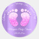 Adesivo Redondo Chá de fraldas De Pés-Brilhante Roxo Obrigado