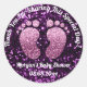 Adesivo Redondo Chá de fraldas De Pés-Brilhante Roxo Obrigado