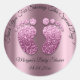 Adesivo Redondo Chá de fraldas De Pés-Brilhante Roxo Obrigado