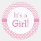 Pink Chevron & Polkas Dot Classic Round Sticker Um modo perfeito de apresentar seu novo bebê nascer. Seja colocando um adesivo num envelope ou um presente, isso mostrará a orgulho que você está sentindo em uma ocasião tão alegre. Trabalho de arte por MyClipArtStore