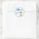 Um ursinho bonitinho flutua para cima com um balão em forma de estrela e sua mensagem personalizada cercada por uma borda azul. Edite o texto de exemplo com seu próprio para que um adesivo personalizado seja usado em favoritos para festas, presentes e correspondência. Este item também está disponível em rosa.