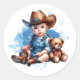 Adesivo Redondo Chá de fraldas de vaqueiro e ursinho