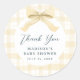 Chás de fraldas em uma xadrez doce de cor d'água em amarelo claro com um arco/fita amarrada para as bolsas favoritas ou caixas de favoritos. Personalize facilmente seu adesivo. Para obter informações sobre alterações de design personalizadas pelo designer independente, envie um email para paula@labellarue.com ANTES de personalizar ou fazer um pedido. Arte original criada por Paula Pecevich, La Bella Rue