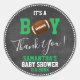 Um obrigado de chá de fraldas de quadro-negro para esporte, o encantador tema do FOTBALL moderno, que você usa para seus favores de presentes. Verde, branco, castanho e quadro. Bola no meio ou é um MENINO. Etiquetas de modelo editáveis. Obter convites correspondentes!