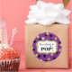 Chá de fraldas Ela está pronta para fazer POP de adesivos de etiquetas em roxo com confete preto e dourado, por favor note que brilho é apenas efeito fotográfico. Uma maneira excelente de decorar favores de chá de fraldas de pipoca.