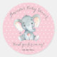 Adesivo Redondo Chá de fraldas Elefante Rosa, Obrigado Por