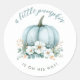 Celebre a chegada da sua abóbora com este adorável adesivo com tema-queda, perfeito para adicionar um toque pessoal ao seu decoro de chá de fraldas. Apresentando uma charmosa abóbora azul rodeada por delicadas flores de aquarela e eucalipto em tons pastéis macios, este adesivo captura a essência de um chá de bebê autóctone. A frase "está a caminho" acrescenta um toque doce, fazer um complemento excelente para favorecer bolsas, convites ou decoração de festas. Personalize-o para criar uma lembrança memorável enquanto celebra a alegria da sua chegada.