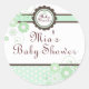 Este adesivo de Chá de fraldas personalizável moderno apresenta flores verdes em um fundo de bolinhas verde e branco. Personalize-o adicionando seus detalhes na fonte de sua escolha!