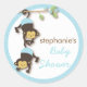 Adesivo Redondo Chá de fraldas gêmeo macaco moderno em azul