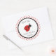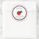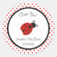 Adesivo redondo para favor ao chá de fraldas com o tema da joaninha e combinação de cor vermelha-preta.