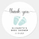Um adesivo neutro em relação ao gênero para os favores do seu chá de fraldas e obrigado que você escreve com "obrigado você" em um roteiro de na moda com baloiços e uma cor d'água verde da casa da moeda dos pés do bebê. Por baixo, você pode personalizar facilmente com seu nome e data de chá.