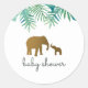 Adesivo Redondo Chá de fraldas Moderno da Família Elefante Dourada
