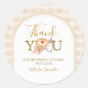 Pastel A Little Cutie Pie Gingham Fall Chá de fraldas Obrigado Clássico Round Sticker Todos os textos podem ser personalizados