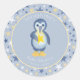 Diga "Obrigado!" com esses chás de fraldas personalizados. Estes adesivos são personalizáveis: Você pode editar o texto clicando em "personalizar este modelo". Decorre as suas bolsas de goódie ou favores de chá de fraldas com estes obrigados redondos, azuis e amarelos, que apresentam um fundo estrelado, pintado à mão, com padrão estelar azul e amarelo, e uma ilustração de um pinguim bebê giro segurando uma estrela amarela. Estes adesivos redondos são excelentes para personalizar todo o tipo de favoritos para festas para chás de fraldas temáticos de pinguim de inverno, aspersores de bebês e festas de aniversário de criança!