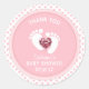 Pés de bebês bonitos e etiquetas adesivas cor-de-bolinhas/chá de fraldas cor-de-rosa para os seus favores de presentes. Diamante rosa para adicionar aquele pequeno toque de brilho extra. Esquema de cores branco e rosa. Continue a redação Obrigado ou adicione o seu texto.