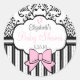 Vintagens muito bonito, pretas e brancas parecem damasco floral preto, com fundo listrado preto e branco, mais um arco rosa bonito e pegadas de bebê rosa...adesivo do chá de fraldas. Personalizado com seu nome e data de chá! O adesivo de tamanho pequeno é perfeito para selagens de envelopes ou para uma etiqueta circular de metal e é anexado a um saco de biscoitos! Maior é o excelente para pratos de papel, xícaras e balões e presentes de hóspedes chás de fraldas. Adicionar produtos correspondentes, como convites e guia de chá de fraldas. Este "Damask Chá de fraldas Sticker" está disponível em outras cores. Visite minha loja "The Hungarican Princess" em www.zazzle.com/hungaricanprincess*. Olhe na minha categoria de departamento "Oh Baby".