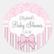 Adesivo Redondo Chá de fraldas rosa e branco do Damasco