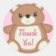 Adesivo Redondo Chá de fraldas Rosa Teddy Bear Obrigado