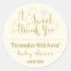 Agradecemos o adesivo por casamentos e chás com a frase "Um doce obrigado" em ouro Personalize a cor de fundo, o tamanho e personalize com o nome e a data do evento Pode ser usado para favores, bufetes doces, sobremesas e muito mais Você pode mudar o estilo da fonte, a cor ou o tipo de caixa. Clique em Personalizar para ver suas opções. Não se esqueça de usar o link "Transferir este design" para criar um conjunto temático inteiro de produtos (bolsas, placas, caixas, adesivos, guardanapos e muito mais!)