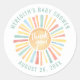 Este design de adesivo redondo apresenta um sol vibrante no centro, com a frase alegre "Obrigado!" colocada em cima do sol. Os raios do sol explodiram em tons de amarelo, laranja, vermelho, chato e azul, trazendo calor e alegria para sua celebração. Na parte superior do adesivo, a "Chá de fraldas de nome da Mãe" é mostrada elegantemente em azul lacrimogêneo, e na parte inferior, a data do chá de fraldas também está em azul real para um toque coordenado e personalizado. Esta design complementa perfeitamente o seu chá de fraldas com tema solar, adicionando um elemento lúdico mas elegante ao seu evento. Totalmente personalizável, você pode ajustar o nome, a data e as cores para se adequar aos detalhes do seu chá. Um toque perfeito para os presentes ou favoritos para festas do obrigado!