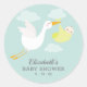 Uma linda cegonha branca carregar um bebê em um pacote amarelo através do céu, perfeito para adesivos de favorecimento de chá de fraldas neutro por gênero. Convites, pratos, guardanapos e mais em rosa e azul.