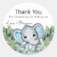 Um lindo elefante de bebê e obrigado verde que você autocola com uma mensagem e um nome personalizados. Uma maneira doce de superar o obrigado que você prefere para o seu chá de fraldas.