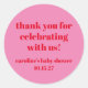 Chá de fraldas Personalizado Simples, Rosa Brilhante e Vermelho Moderno, da Tipografia Escuro, Obrigado Clássico Adesivo Redondo