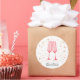 Dois copos de champanhe rosa sobre um fundo de confetes rosa e dourado, estes adesivos redondos são perfeitos para lembrancinhas de chá de noiva e mais. Itens COMBINADOS em nossa coleção.