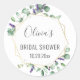Chá de Noiva Floral com Moldura Geométrica de Eucalipto Moderna Adesivo Redondo Clássico.