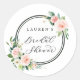 Este adesivo de chá de noiva apresenta flores pintadas em aquarela em rosa choque, folhagem branca e verde com molduras circulares. Para personalização avançada deste design, por favor clique no botão "Personalizar".