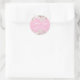 Elegante adesivo redondo clássico Flor de Cerejeira branca obrigada apresentando delicada flor de cerejeira da primavera emoldurando os detalhes do seu chá de noiva em uma fonte branca elegante em um fundo cor de rosa. Perfeito como selos de envelope ou adesivos de favor para seus convidados. Criado por Thisisnotme©