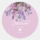 Adesivo de chá de panela floral com uma borda superior apresentando um buquê pintado à mão de rosas, lilases, lavanda e flores silvestres cor de mauve com a mensagem "do Meu Chá para o Seu" em uma linda caligrafia e seu nome e um coração branco abaixo. Esses adesivos elegantes são perfeitos para uma celebração no verão ou na primavera e adicionam um toque pessoal aos seus brindes.
