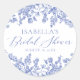 Adesivo Redondo Clássico de Chá de Noiva Floral Azul de Chinoiserie
