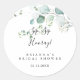 Este adesivo de favor de chá de noiva de eucalipto verde sip sip hooray é perfeito para um simples chá de noiva. O design apresenta belas folhas de eucalipto verde pintadas à mão em aquarela, inspirando charme natural.