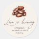 Adesivo Redondo Chá de Noiva Grãos de Café Amor Está Cozinhando