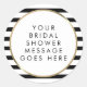 Com um clássico fundo de listras pretas e brancas, esses adesivos elegantes de chá de noiva apresentam uma borda de foil dourado falso elegante emoldurando sua mensagem de casamento personalizada especial definida em tipografia chic. Criado por Thisisnotme©