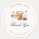 Mostre sua gratidão com este Adesivo Redondo Clássico Chá de Noiva Tema Café Obrigado. Com um design fofo inspirado em café, este adesivo é perfeito para adicionar um toque especial aos seus cartões de agradecimento, brindes ou sacolas de presente. Uma maneira divertida e elegante de agradecer aos seus convidados por terem comparecido ao seu chá de noiva, tornando sua celebração ainda mais memorável.