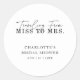 Adicione um toque de elegância ao seu chá de noiva com este adesivo redondo clássico! Com tipografia sofisticada e caligrafia caprichosa, é perfeito para celebrar a jornada de Miss para Mrs. É um detalhe elegante e econômico para lembrancinhas, decoração ou convites - simples, moderno e de uma beleza atemporal!