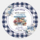Adesivo Redondo Chá de Noiva Xadrez Azul Gingham fora do mercado F