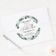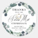 Adesivos personalizados de agradecimento para chá de panela com a cor verde-sage de aquarela e folhagem de eucalipto verde-azulado, um anel de noivado e uma fonte de caligrafia elegante para FUTURA SRA e personalizado com o nome da noiva e a data do chá. OPÇÕES: O exemplo é mostrado no tamanho de 3 polegadas - outros tamanhos estão disponíveis na página de pedidos. ASSISTÊNCIA: Para obter ajuda com a modificação do design ou personalização, alteração de cor, redimensionamento, transferência do design para outro produto ou se você gostaria de itens coordenados, entre em contato com o designer ANTES DE COMPRAR por meio da guia de MENSSAGEM do Zazzle Chat abaixo ou envie um e-mail para makeitaboutyoustore@gmail.com.