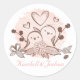 O amor está no ar! Este adesivo divertido apresenta uma imagem de desenho de um par de aves marrons-do-cartoon, passando por um ninho floral com corações e flores realçadas contra um fundo rosa pastel. Você pode personalizar os adesivos com os nomes da noiva e do noivo, e um nome de família ou de empresa. Casamentos e festas * Festas de envelopes * Uso pessoal - cartões e cartas * Decorar livros de recortes, revistas, cadernos * Divertimento para as empresas * Festa/Favor do casamento * Festas e chás de fraldas