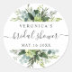 Este adesivo de chá de panela de casamento apresenta cor d'água eucalipto, verde botânico e folhas azuis-claras com caligrafia moderna. Para uma personalização mais avançada deste design, clique no BOTÃO FERRAMENTA DESIGN AZUL. Itens correspondentes também estão disponíveis.