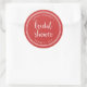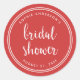 Adesivo elegante e redondo para Chá de Noiva Náutico com uma borda de listras brancas e a palavra "Chá de Noiva" em uma fonte trendy de pincel sobre um fundo vermelho. Use-o para selar seus envelopes. Confira outros itens de casamento aqui https://www.zazzle.com/rosewoodandcitrus/gifts?cg=196540141241316965&rf=238364477188679314