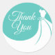 Obrigado de chá de panela elegante azul-apphire, você, um adesivo redondo clássico com um vestido de noiva elegante em um fundo azul-safira com uma bela fonte branca de guião. Perfeito para selos de envelopes e adesivos.