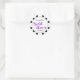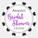 Moderno e tão chique, este adesivo de chá de panela personalizado de aparência de designer apresenta bolinhas de moda pretas com um indefinido de quadro brilhante prateado e acento de inscrição de script de pincel roxo. Pronto para personalizar com os detalhes do seu chá de panela substituindo o texto de exemplo mostrado.