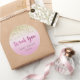 Adesivo redondo a favor do chá de panela com brilho dourado falso e fundo de cor rosa-d'água ombre.
