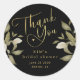 Obrigado preto elegante e elegante, elegante e sofisticado, que você cola para um chá de panela de luxo vintage, decorado com uma falsa escrita de ouro e marfim e folhagem botânica verde-sábio. +++++++++ Observe que a cor de fundo pode ser alterada para corresponder ao seu esquema de cor de casamento. Se for confortável, você pode alterá-lo depois de selecionar a opção PERSONALIZAR TI. ++++++++ Se precisar de ajuda, envie uma mensagem ao designer ou acesse o serviço Free Live Designer do Zazzle.
