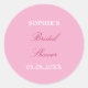 Fácil de personalizar com o nome da noiva-a-ser e a data do chá de panela, este adesivo bonito apresenta uma inscrição tradicional numa bela cor magenta cereja num fundo de rosa claro.